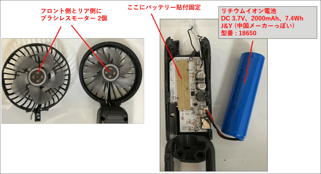 羽根が折れてしまったモバイル扇風機があって、廃棄予定だったので分解してみた。